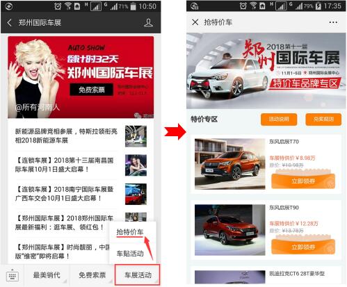 若您已购票,还未来得及参与抢特价车活动,可通过关注【郑州国际车展】微信公众号,选择【车展活动】点击【抢特价车】,即可选择特价意向车型,获得专属特价车券,一定要保存好此特价车券号,车展期间将随机抽取特价车券号,成为准车主。