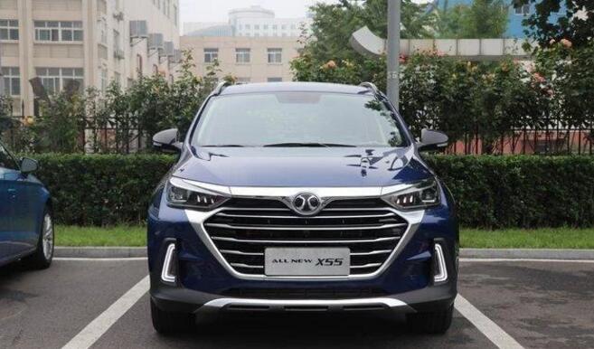 外观方面我刚看到第一眼哇塞感觉很像奥迪前脸啊,以为奥迪出新车了呢……看标原来是我大国北汽的车。前脸很大面积的格栅看上去很霸气我个人觉得丝毫不输给奥迪,奥迪有多夸张北汽X55就有多凶厚,而且这车名字也有点儿……X55,CS55……前脸还有犀利的大灯科技感很强,而且是个LED的设计。还有L形状的日间行车灯识别度很高。前脸整个看上去丝毫没有什么低调的感觉就是高屌丝,我就是我!