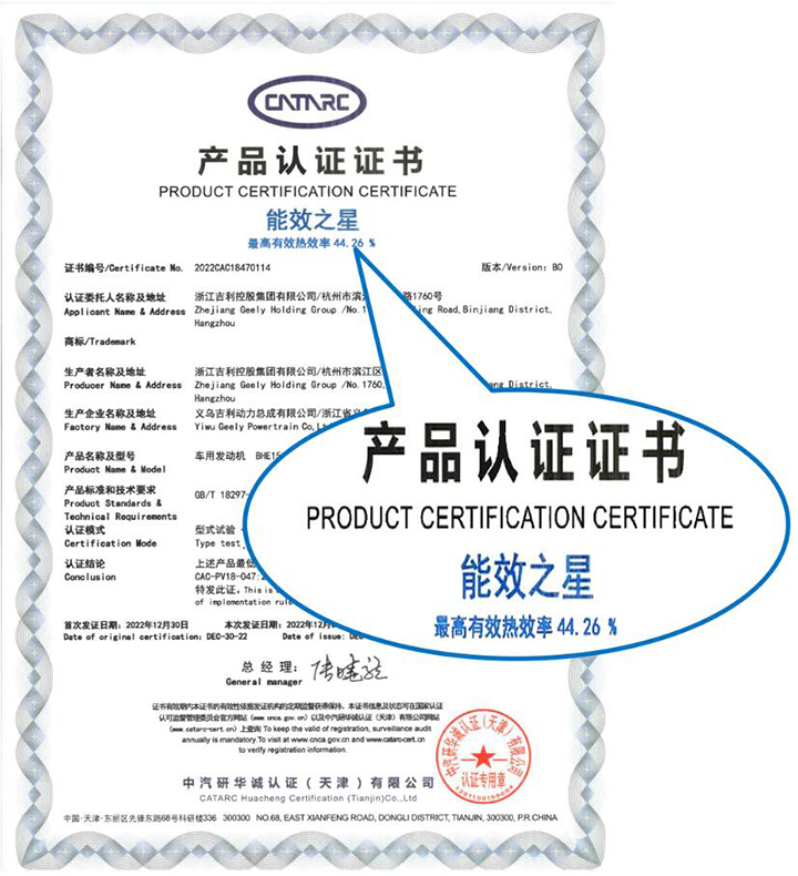 作为新一代雷神电混的拳头产品,BHE15 Plus的有效热效率44.26%也获得了权威机构中汽研华诚认证授予的“能效之星”称号,同时这也是目前量产混动专用发动机的最高热效率,技术先进性处于行业领先水平。