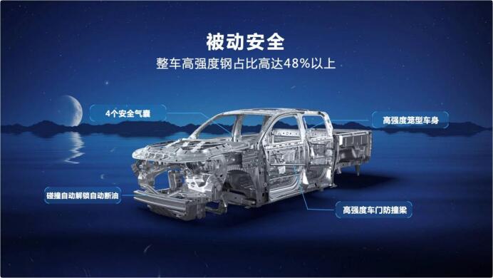 搭载2.0T+8AT黄金动力组合,匹配五连杆后悬架及TOD智能四驱;升级四门一键升降&防夹&自动闭窗、50W无线快充等贴心装备;国内首创隐藏式货箱上车踏板,拥有乘用车级舒适性,媲美同级SUV。