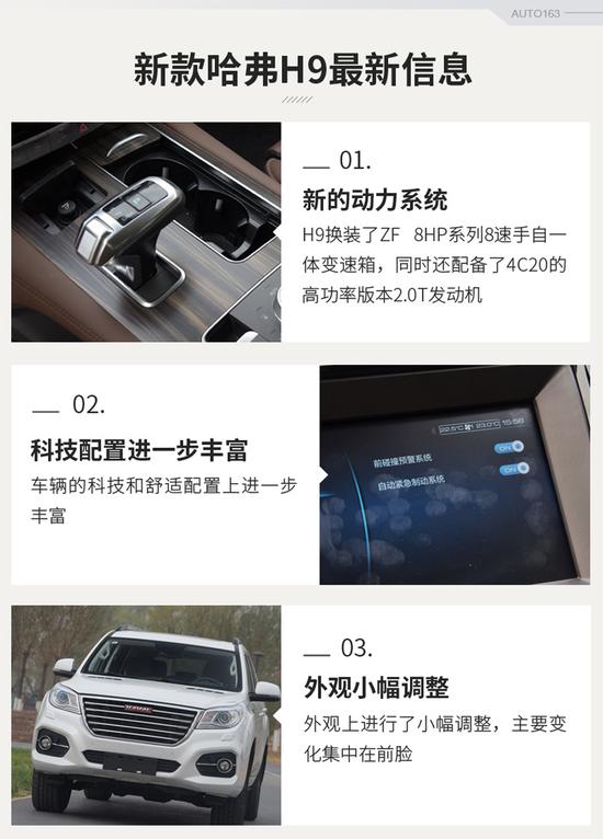 带有跟车功能的自适应巡航也是H9新增的配置,同时车辆还增加了自动启停来降低油耗,陡坡缓降也进行了升级,速度设定范围扩大到了6-20km/h。