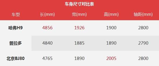 很多人愿意用普拉多的外形去比喻H9,因为它们都是典型的高大威猛风格,都拥有“傲人”的体格,如果查看一下尺寸参数你会发现,H9的长宽高还都超越了普拉多,就冲这个个头,是不是就很有安全感?
