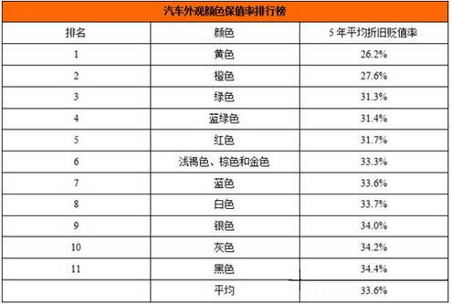 黑色车又躺一枪。根据一些媒体的研究表明,黄色汽车贬值速度最慢,而黑色最快。下面这个就是国外一个名为iSeeCars.com二手车网站的统计结果。看完这个,黑色车主又要默默流泪了。等等,好像有点不妥啊?