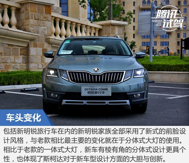 明锐旅行版采用了海外版Scout的设计风格,直瀑式进气格栅、分体式大灯、环绕车身下侧的黑色防擦条,让其看上去拥有浓郁的CrossOver风格。车头造型更偏向于年轻化,镀铬中网搭配引擎盖丰富的线条让整个前脸精致不少。前大灯采用分体式设计,棱角分明个性十足,配合LED日间行车灯独特的两段线条组合,一个灯组就可以识别出这辆车。雾灯区域与保险杠下沿横向贯穿,很好的拉伸了车头的视觉宽度。